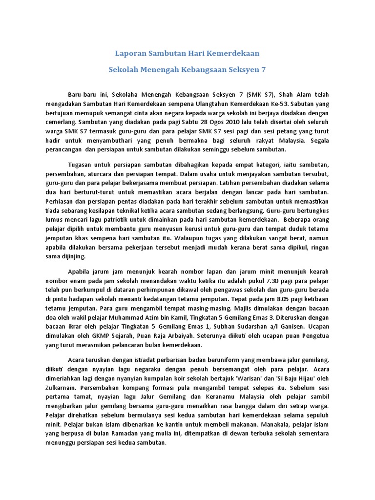 Laporan Sambutan Hari Kemerdekaan Pdf